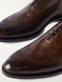 The artful brogue detailing on Berluti’s leather Oxford shoes is a nod to the house's bootmaking history. They've been crafted in Italy from Venezia leather and have hand-painted outsoles, supportive insoles and a Goodyear-welted construction. Size & Fit - Fits true to size. Take your normal size - Only available in full sizes, go up to the nearest whole size if you take a half size - UK sizing Details & Care - Brown Venezia leather (Calf) - Lace-up