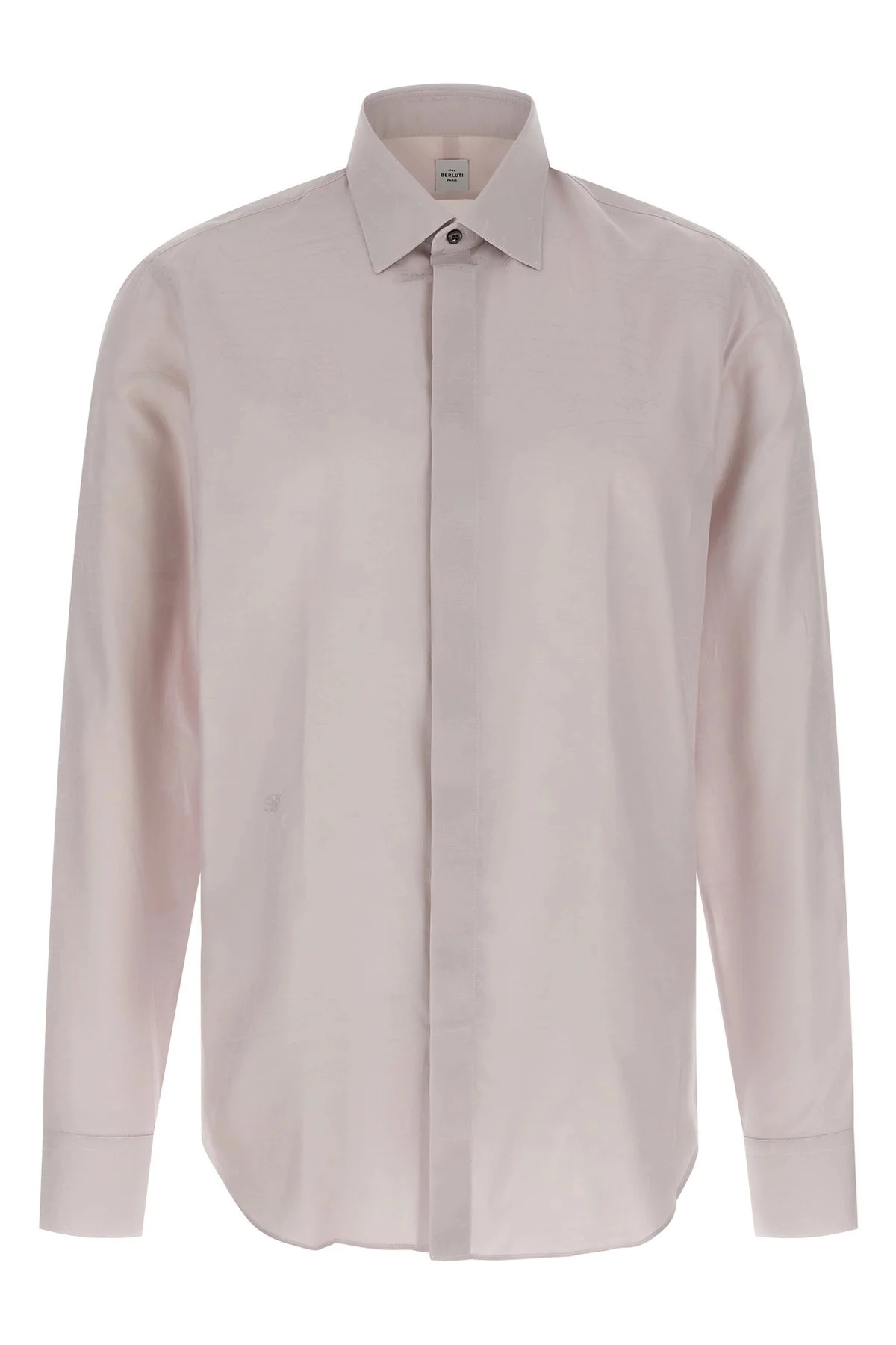 cod. R29HTL85003P40 Silk blend shirt with all-over 'Andy Scritto' pattern, button closure, long cuffed sleeves. Color: Gray Size & Fit: true to size fit - COLLAR size Composition: 53% silk, 47% cotton Made in: Italy