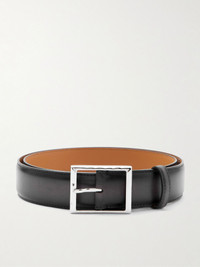Berluti's Venezia leather belt is expertly treated by hand to create a patina that amplifies its versatility. The silver-tone buckle will stand out against dark trousers. Size & Fit - Fits true to size. Take your normal size - Model wears a 90 - Model measures: waist size 32 Details & Care - Black and tonal-grey Venezia leather (Calf) - Silver-tone buckle fastening - Comes with dust bag