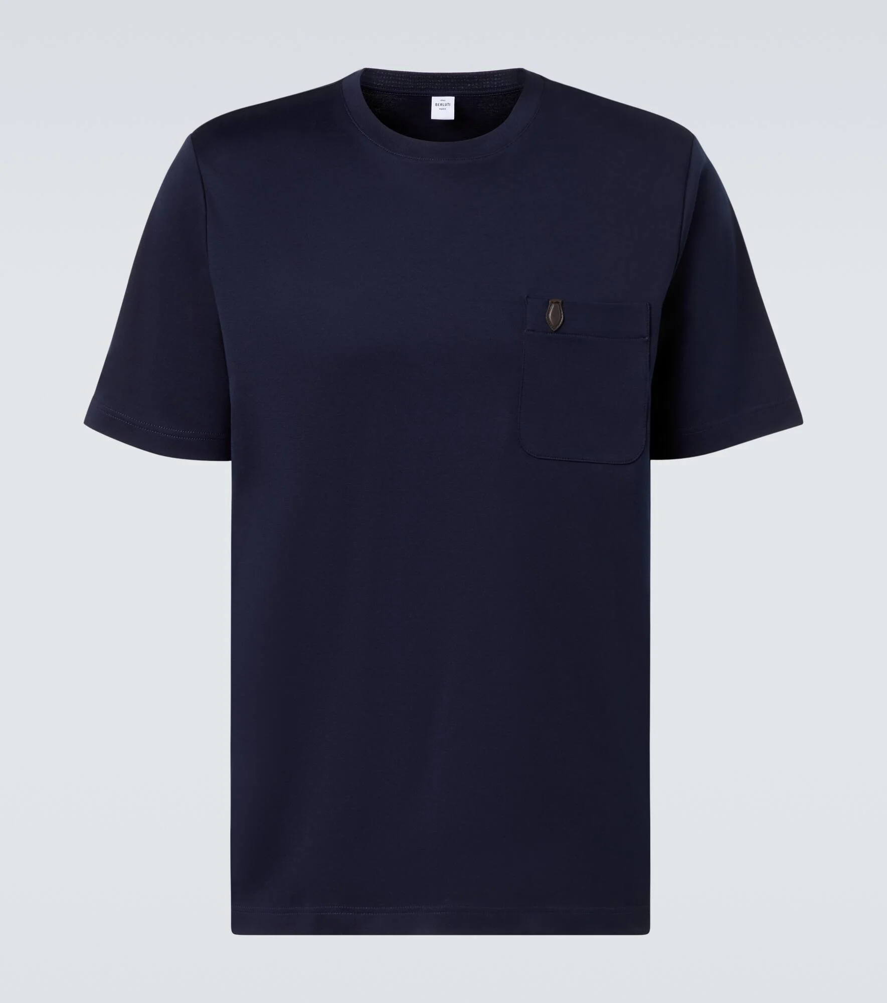 Build your capsule wardrobe with elevated iterations of closet staples, like this T-shirt from Berluti. The design is crafted from cotton jersey and is topped with a tonal patch pocket. Product Details - Material: 100% cotton - Care instructions: machine wash at 30 degrees - Made in Italy - Designer color name: Marine - Item color: blue - Details: 100% calf leather - Collar: crewneck - Pockets: patch - Item number: P01067202 Size & Fit - True to size - Straight fit - Stretchy fabric - Falls below the hip - Height of model is 189cm-74.5" and wears a size L