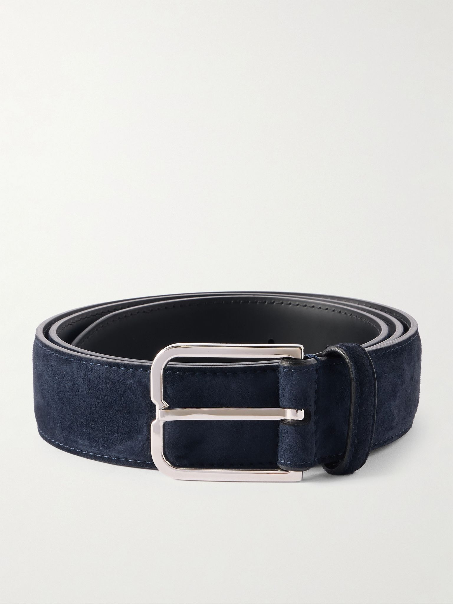 Berluti's 'Essence' belt will work with anything in your wardrobe, from worn-in jeans to double-pleated trousers. It's been made in Italy from deep navy suede and fastens with a silver-tone B-shaped buckle. Size & Fit - Fits true to size. Take your normal size - Model is shown wearing a 90 - Model measures: waist size 32 Details & Care - Navy suede (Calf) - Silver-tone buckle fastening