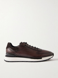 Berluti's 'Fast Track' sneakers have been made in Italy from the label's full-grain Venezia Softy leather that's hand-applied for a rich, nuanced patina. They're trimmed with matching suede along the heel tabs and lined in breathable mesh for comfort. Size & Fit - Fits true to size. Take your normal size - UK sizing Details & Care - Tonal-brown full-grain Venezia Softy leather and suede (Calf) - Lace-up - Designer colour: Soft Brown - Style number: S6377-001