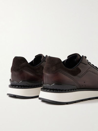 Fast Track Suede-Trimmed Full-Grain Venezia Softy Leather Sneakers Brown