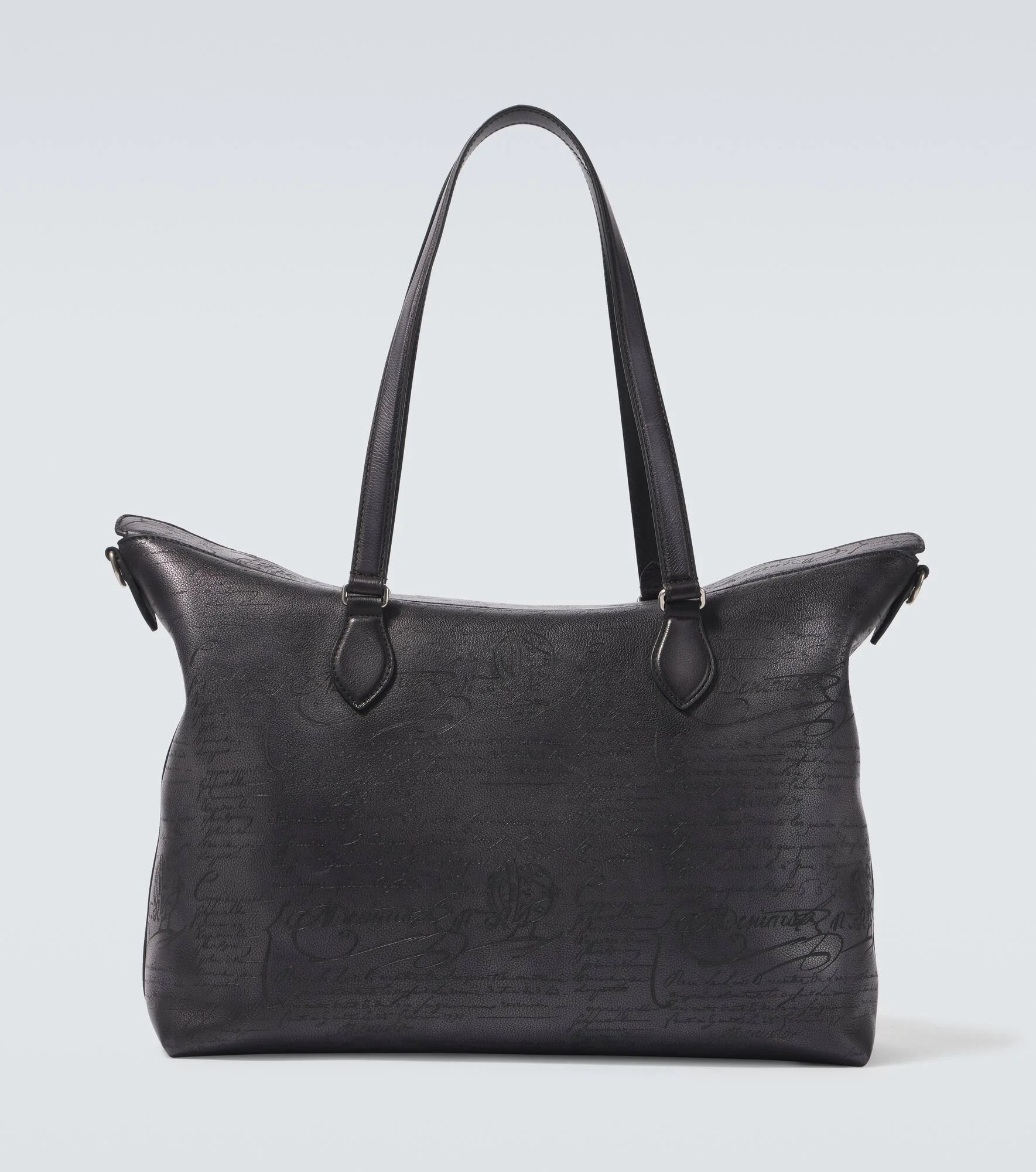 Product Details - Material: calf leather - Lining: fabric - Made in Italy - Designer color name: Nero Grigio - Closure: magnetic-tab fastening - Top handles, Detachable shoulder strap - Internal details: internal zipped pocket, internal slot pocket - Includes: dust bag - Item number: P00948122 Size & Fit - Height 32cm-12.5" - Width 50cm-19.5" - Max. depth 15cm-6" - Length of handles 65cm-25.5" - Min. length shoulder strap 76cm-30" - Max. length shoulder strap 100cm-39.5"