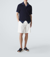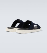 Step into style with these knitted slides from Berluti. The blue-hued pair is lined with supple leather and complete with the brand's logo-debossed leather patch. Product Details - Upper: fabric - Lining: leather - Sole: leather insole, rubber sole - Color: blue - Toe shape: round open toe - Made in Italy - Includes: dust bag, shoe box - Designer color name: Navy - Trim: leather - Item number: P01163378 Size & Fit - Fits slightly small to size - we recommend trying a half size larger - UK sizes