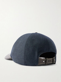 Logo-Embroidered Leather-Trimmed Wool-Blend Baseball Cap Navy