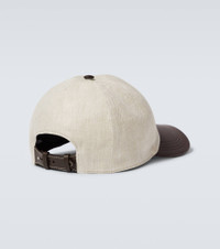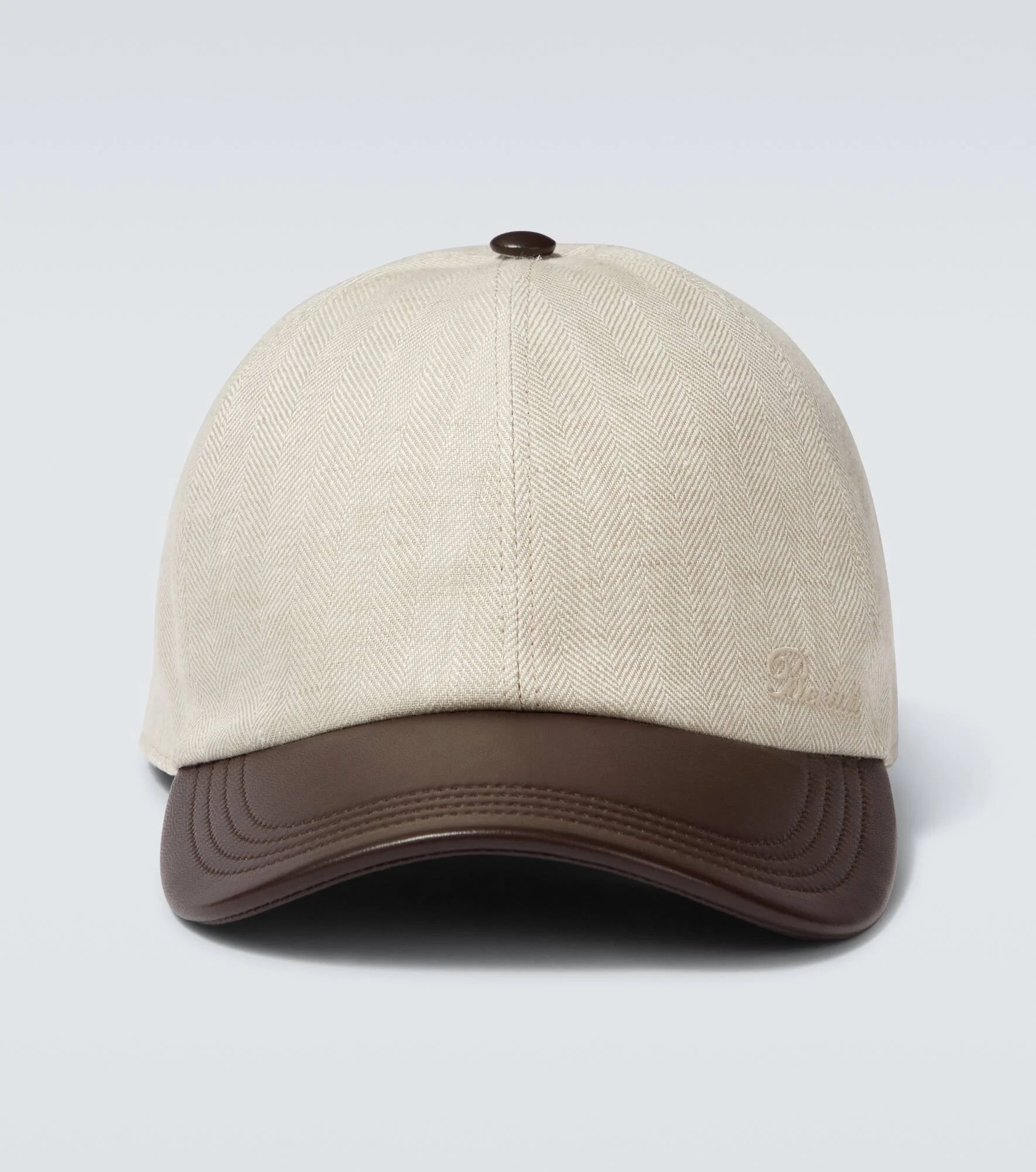 This linen baseball cap from Berluti features a leather visor and rear strap. The brand name is showcased in tonal embroidery at the front. Product Details - Material: 100% linen - Care instructions: specialist clean - Made in Italy - Designer color name: Shades Of Beige - Item color: beige - Material II: 50% cotton, 50% viscose - Lining: 100% cupro - Details: 100% leather - Item number: P00995528 Size & Fit - Adjustable size - Length of visor 7cm-3"