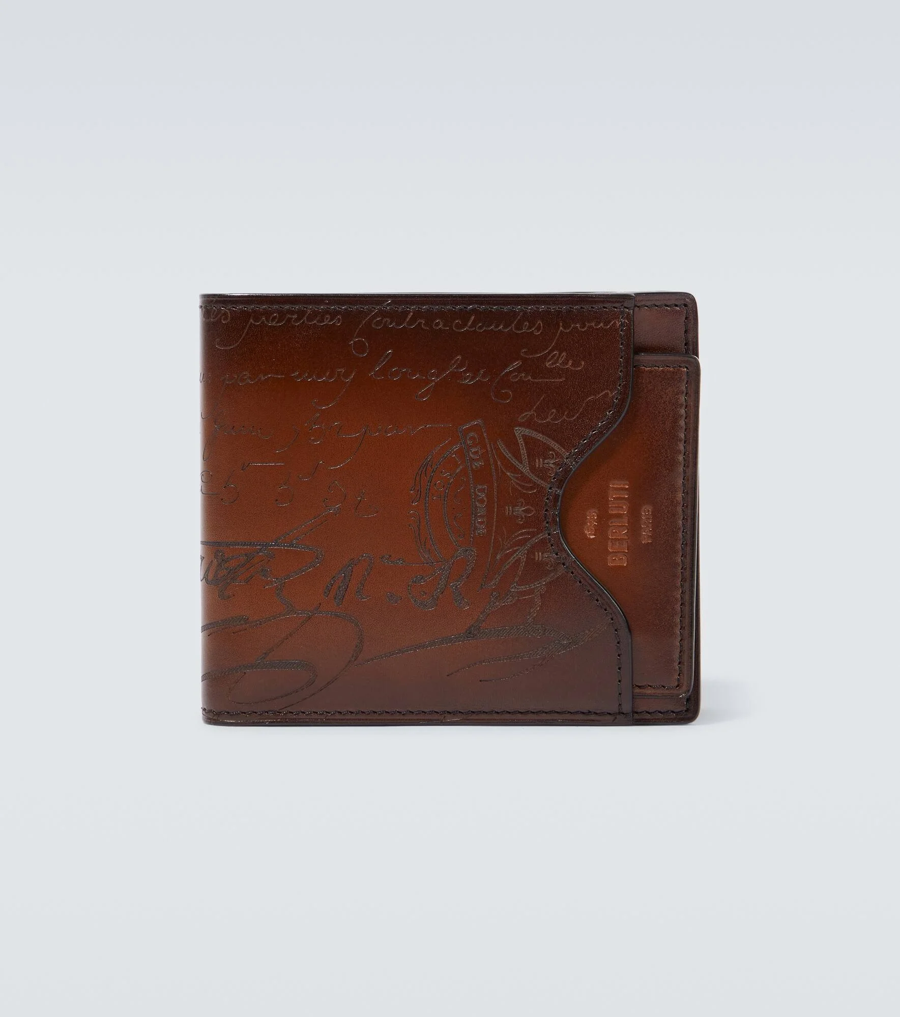 Made from leather, the Makore 2-in-1 Scritto wallet from Berluti features a removable cardholder section. Defined by cursive writing-style debossed detailing, the foldover design has multiple card slots and a bill slip pocket. Product Details - Material: leather - Lining: leather - Made in Italy - Designer color name: Cacao Intenso - Internal details: Card slots, bill slot - Comes with a card holder - Item number: P00735460 Size & Fit - Height 9,5cm-3.5" - Width 11cm-4.5" - Depth 2cm-1"