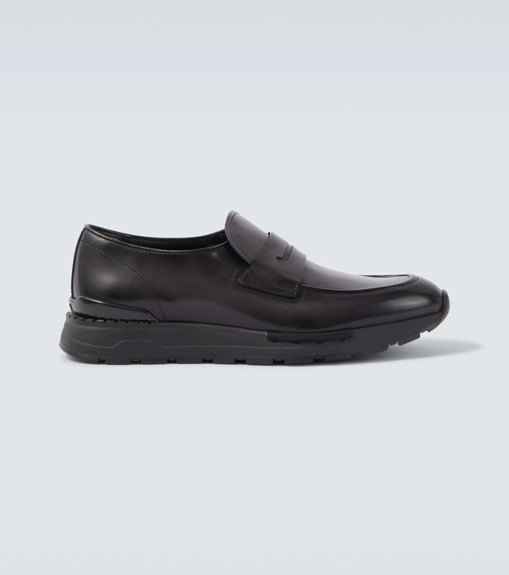 Loafer-inspired, the Venezia sneakers from Berluti are crafted from smooth calf leather using Incollato construction for enhanced flexibility and durability. Featuring a central cut-out detail and an almond-shaped toe, this pair perfectly blends comfort with sophistication. Product Details - Upper: leather - Lining: leather - Sole: leather insole, rubber sole - Toe shape: almond toe - Made in Italy - Includes: dust bags, shoe box - Designer color name: Nero Grigio - Item color: black - Item number: P01067232 Size & Fit - True to size - Half sizes please take the next size up - UK sizes