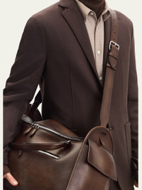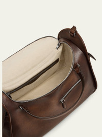 Berluti "Periple" weekender bag in soft Venezia leather Venezia leather adds exquisite transparency and depth. Each patina is unique, born of the handiwork of the Maison’s expert colourists Two-way zip closure Two top handles Adjustable shoulder strap Exterior, one front zip pocket, side flap pockets Interior, one zip pocket, two flat pockets Approx. 13.8"H x 21.6"W x 8.26"D Made in Italy Online Inquiries: BGS21_NCZJM| Store Inquiries: #4983286