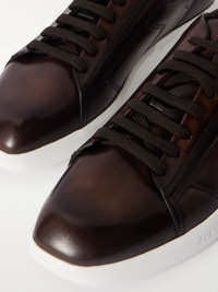 Berluti combines the smart look of Oxfords with the comfort of running shoes in these 'Stellar' sneakers. Designed with chiselled toes, they've been made in Italy from hand-polished Venezia leather and have lightweight rubber soles. Size & Fit - Fits true to size. Take your normal size - UK sizing Details & Care - Dark-brown Venezia leather (Calf) - Lace-up - Style number: S6490-001
