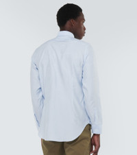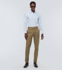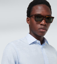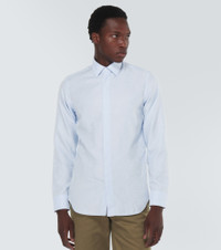 This piece features the extremely elegant Scritto motif, created by Olga Berluti as an homage to the art of calligraphy. The Scritto Andy shirt is crafted from a silk and cotton blend, and a hidden placket with button closures. Product Details - Material: 52% silk, 48% cotton - Made in Italy - Closure: concealed buttoned front - Designer color name: Sky Blue - Pockets: breast pocket, buttoned pocket, flap - Care instructions: dry clean - Item number: P00828407 Size & Fit - True to size - Without pleats in the back - Slim fit - Lightweight material - Falls below the hip - The model in the picture is 185cm-6'1" and wearing a size EU 39
