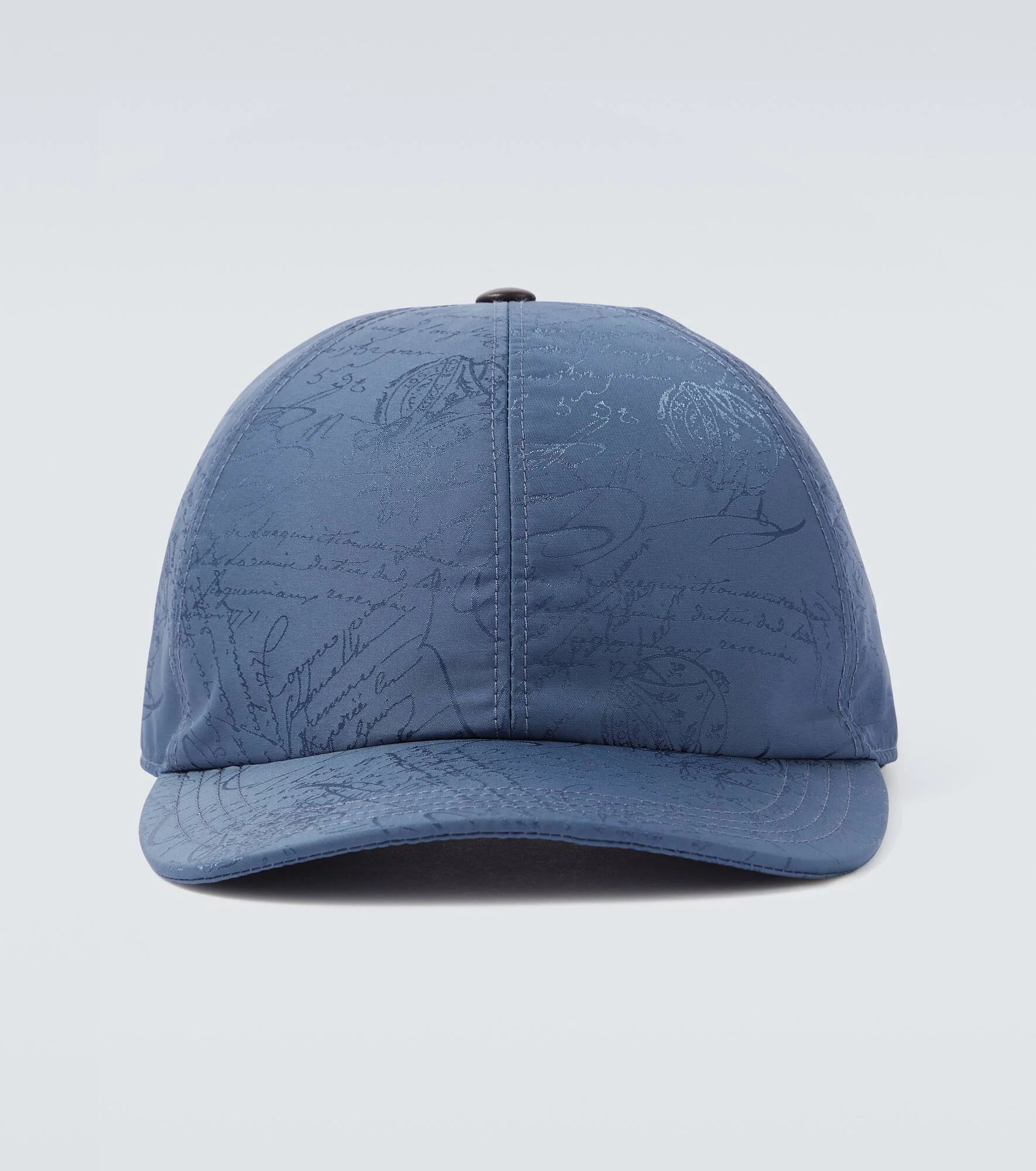 An essential accessory for your everyday rotation, this Berluti baseball cap is crafted from technical fabric. This piece features the extremely elegant Scritto motif, created by Olga Berluti as an homage to the art of calligraphy. Product Details - Material: 100% polyamide - Care instructions: dry clean - Made in Italy - Color: blue - Designer color name: Dim Blue - Item color: blue - Details: 50% viscose, 50% cotton - Trim: 100% lamb leather - Item number: P01124207 Size & Fit - Adjustable size - Circumference size S 56cm-22" - Circumference size M 57cm-22.5" - Circumference size L 58cm-23" - Length of visor 7cm-3"