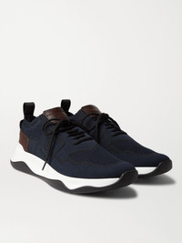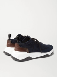 Shadow Venezia Leather-Trimmed Stretch-Knit Sneakers Navy