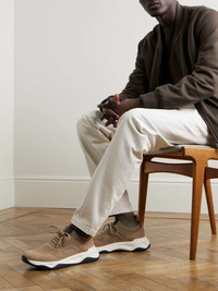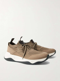 Shadow Nubuck-Trimmed Stretch-Knit Sneakers