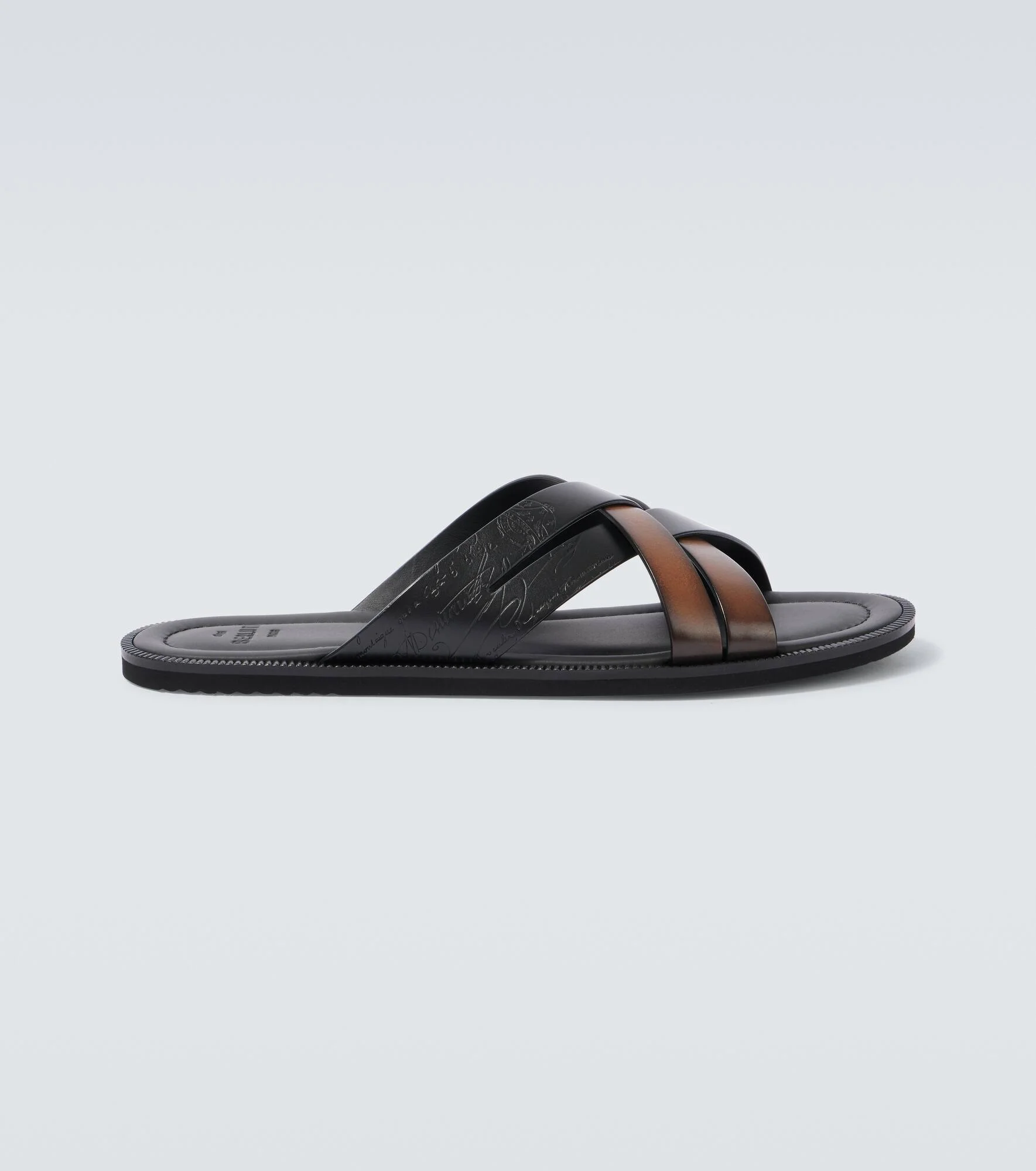 Crafted in Italy from Scritto leather using Berluti's signature incollato construction, the Sifnos leather sandals ensure lightweight comfort. This design features rubber outsoles on open-toe silhouettes. Product Details - Upper: leather - Lining: leather - Sole: leather insole, rubber sole - Toe shape: almond open toe - Made in Italy - Includes: dust bags, shoe box - Designer color name: Cacao Intenso - Item color: brown - Item number: P01069193 Size & Fit - True to size - Half sizes please take the next size up - UK sizes
