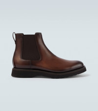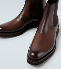 Crafted from supple leather, the Venezia boots from Berluti effortlessly blend comfort with elegance. Perfect for pairing with sharp tailoring or relaxed off-duty looks, this pair features an elasticated side and almond-toe silhouette. Product Details - Upper: leather, fabric - Lining: leather, fabric - Sole: leather insole, rubber sole - Toe shape: almond toe - Made in Italy - Includes: dust bag, shoe box - Designer color name: Marrone Intenso - Item color: brown - Item number: P01067216 Size & Fit - True to size - Half sizes please take the next size up - UK sizes