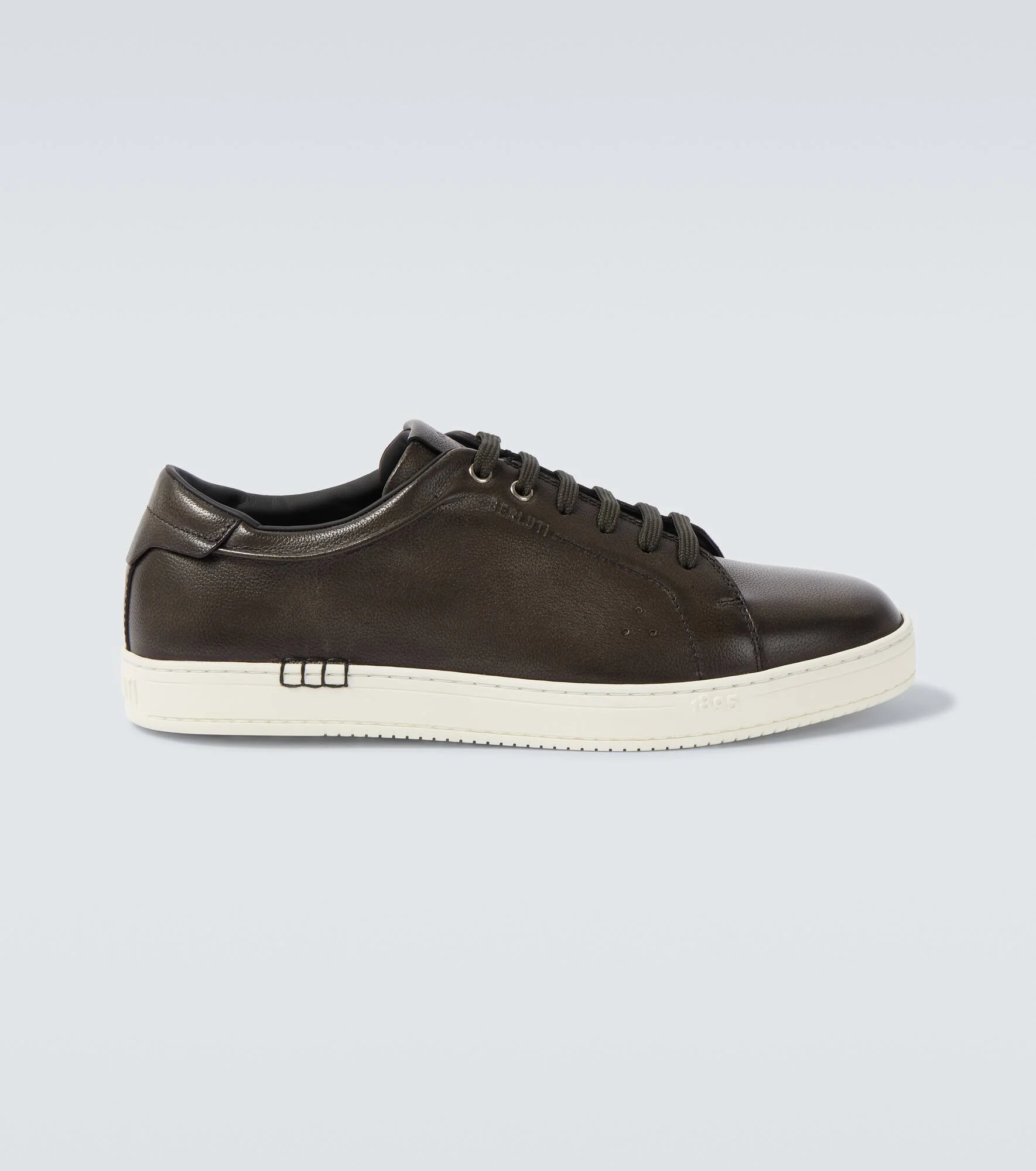 The Venezia sneakers from Berluti are crafted from grained calf leather using Incollato construction for enhanced flexibility and durability. Featuring a round-shaped toe, this lace-up pair perfectly blends comfort with sophistication. Product Details - Upper: leather - Lining: leather - Sole: leather insole, rubber sole - Toe shape: round toe - Made in Italy - Includes: shoe box, dust bags, extra laces - Designer color name: Selva Oscura - Item color: green - Item number: P01067215 Size & Fit - Fits slightly large to size - we recommend trying a half size smaller - UK sizes
