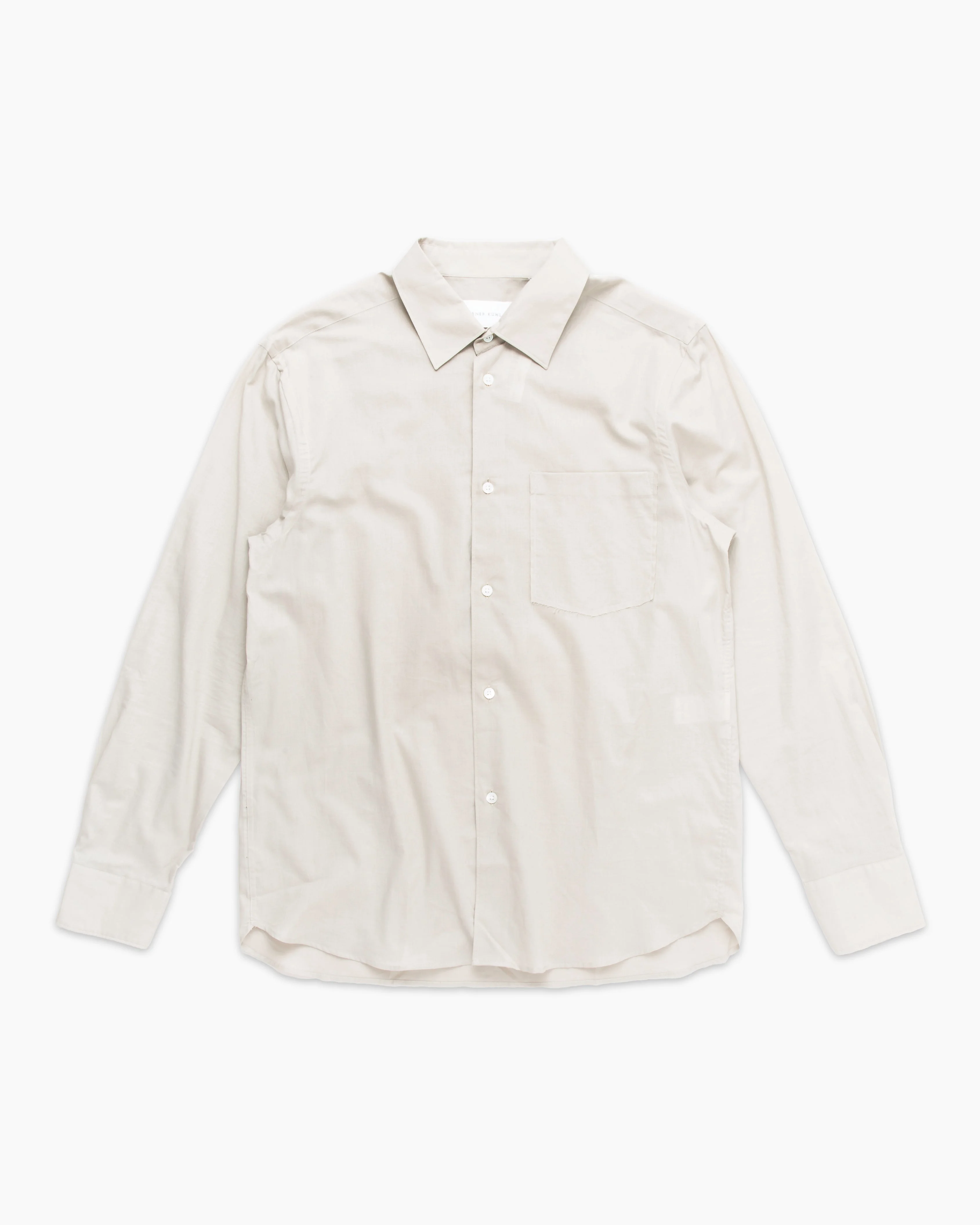 Light grey Volume Shirt Finepop by Berner Kuhl constructed from deadstock poplin cotton. Offers a classic fit with genuine mother of pearl buttons and a gently curved hemline. 100% Cotton