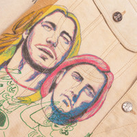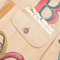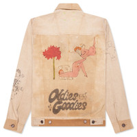 The Better With Age Harrison Reconstructed Trucker Jacket is a standout piece that embodies the brand's dedication to sustainability and individuality. Each piece is crafted from authentic vintage denim, giving each piece a one-of-one feel. Featuring a classic collar, adjustable waist fit, and embroidered brand tagline, this jacket balances timeless structure with thoughtful design. Reconstructed with custom buttons and functional pockets, it offers both style and utility. This garment design varies and may display stains, blemishes, wear, or general signs of age, adding to its unique charm. BUYER WILL RECEIVE A ONE-OF-ONE VINTAGE JACKET IN A RANDOMLY SELECTED COLOR. PRODUCT IMAGES SHOWN ARE EXAMPLES AND MAY NOT REFLECT THE EXACT ITEM RECEIVED. ALL SALES ARE FINAL. - Fabric type varies - One-of-one design - Classic collar - Buttoned cuffs - Adjustable waist fit - Embroidered brand tagline - Custom buttons - Button chest pockets - Open lower torso pockets - Hand stitching, beadwork, pin ornament, patchwork, embroidery, dyed, or printed graphics - May show signs of wear, blemishes, or age - Style No: BWACJHAR-MUL