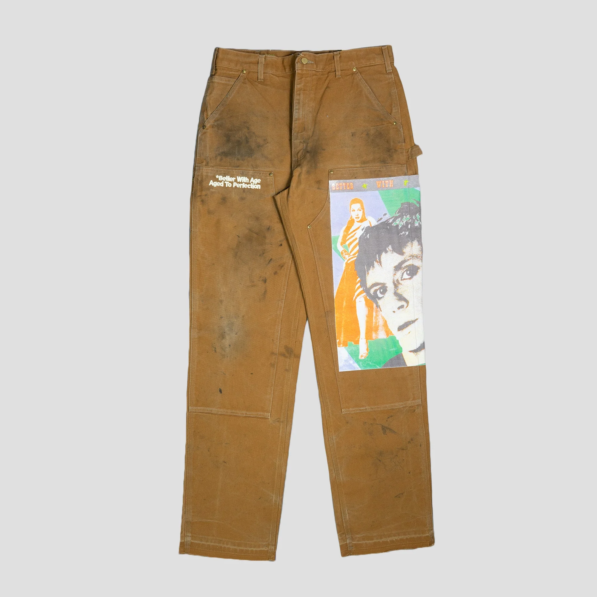 *100% Cotton *Remake of Up-cycle Vintage Work Pants *Distressed *One of a kind *Made in USA *Size - Waist 36" / Inseam 38"