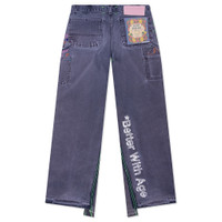 The Painter's Hand-Beaded Double-Wide Trouser is a standout piece that embodies the brand's dedication to sustainability and individuality. Each piece is crafted from authentic vintage denim, giving each piece a one-of-one feel. With hand beaded designs, *Better With Age branding, and a custom logo. This denim offers a perfect blend of elevated style and unique craftsmanship. This garment design varies and may display stains, blemishes, wear, or general signs of age, adding to its unique charm. BUYER WILL RECEIVE A ONE-OF-ONE VINTAGE DENIM IN A RANDOMLY SELECTED COLOR. PRODUCT IMAGES SHOWN ARE EXAMPLES AND MAY NOT REFLECT THE EXACT ITEM RECEIVED. ALL SALES ARE FINAL. - Fabric type varies - One-of-one design - Hand beaded design - Hand beaded brand tagline - Custom log - Button up or zip fly - May show signs of wear, blemishes, or age - Style No: BWADPPAIN