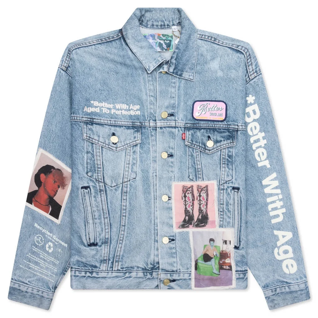 The Portrait Denim Jacket in Multi is crafted from cotton and features distressed detailing alongside bold brand embroidery. The jacket's standout patchwork and portrait design adds a creative, artistic touch. It has a classic button-up closure and is made from unique, hand-picked vintage denim by BWA. Due to the nature of the materials, each jacket is one-of-a-kind, with product photos serving as examples. Signs of age, such as stains, blemishes, or wear, may be present, reflecting the garment’s vintage origins. Additionally, each piece has been measured and resized to accommodate any size variances due to its vintage nature. THIS PRODUCT DOES NOT QUALIFY FOR DISCOUNTS OR SPECIAL PROMOTIONS, ALL SALES ARE FINAL. - 100% Cotton - Distressed detailing with brand embroidery - Patchwork and portrait design - Button-up closure - This garment may display stains, blemishes, wear, or general signs of age. - This garment has been measured and resized to account for size variance due to age. - Style No:BWADJPOR-MUL-5