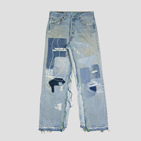 *100% Cotton *Up-cycle Vintage Jeans *Distressed / Vintage Treatment *Zipper-fly *2 Side Pockets and 2 Back Pockets *Made in USA *Each Designed are slightly different