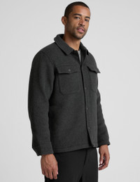 Built for the cold. Stay warm in the wear-with-everything relaxed fit Infinite Wool Men's Shirt Jacket with an insulated design and invisible zipper pockets to keep your essentials secure. - Shirt collar - Buttons at front placket and cuffs - Side seam invisible zipper pockets - Chest patch pockets with button - Interior zipper chest pocket - Insulated design - Relaxed fit Fabric: Insulated Wool A warm, heavyweight lifestyle fabric knit from premium Italian wool, perfect for layering through cool weather. 75% Wool, 25% Nylon