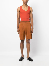 two-pocket knee-length shorts Highlights - Light orange - Cotton blend - Knitted construction - Elasticated waistband - Knee-length Made in Italy Composition Cotton 57%, Viscose 35%, Metallic Fibre 8% SIZE & FIT Model measurements Height 6 ft 3 in(1.9 m) Bust/Chest 35.03 in(89 cm) Hips 36.61 in(93 cm) Waist 29.13 in(74 cm) FittingInformation Designed with a wide leg, offering a loose and roomy fit The elasticated waist allows for a comfortable fit Made with a midweight knit, this piece offers some stretch This piece fits true to size – take your usual size