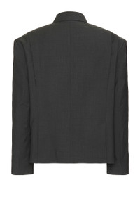 Details - 100% wool - Made in England - Dry clean only - Exposed two-way front zip closure - 3-pocket design - Interior chest pocket - Lightweight suiting fabric with padded shoulders - Our Style No. BERF-MO6 - Manufacturer Style No. 445