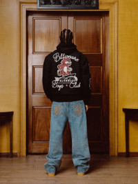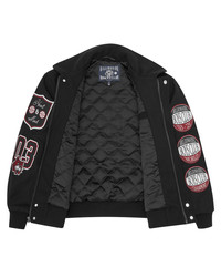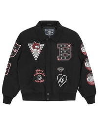 Alumni Collared Varsity Jacket featuring multi graphic embroidery on both the sleeves and front; it is detailed with a full-length embroidered mascot cat and logo on the back. - Black - Embroidered multi graphics and felt patches on the front - Embroidered felt patches on the sleeves - Embroidered Billionaire Boys Club cat mascot on the back - Chain stitched Billionaire Boys Club logo on the back - Popper-fasten branded closure hiding the zip - Elasticated waistband and cuffs - Diamond quilted lining with internal pocket - Two front pockets - Shell: 50% Wool, 50% Polyester; Lining/Filling: 100% - Polyester