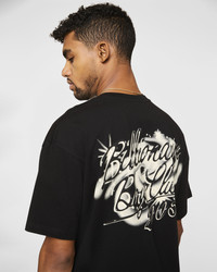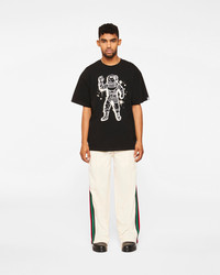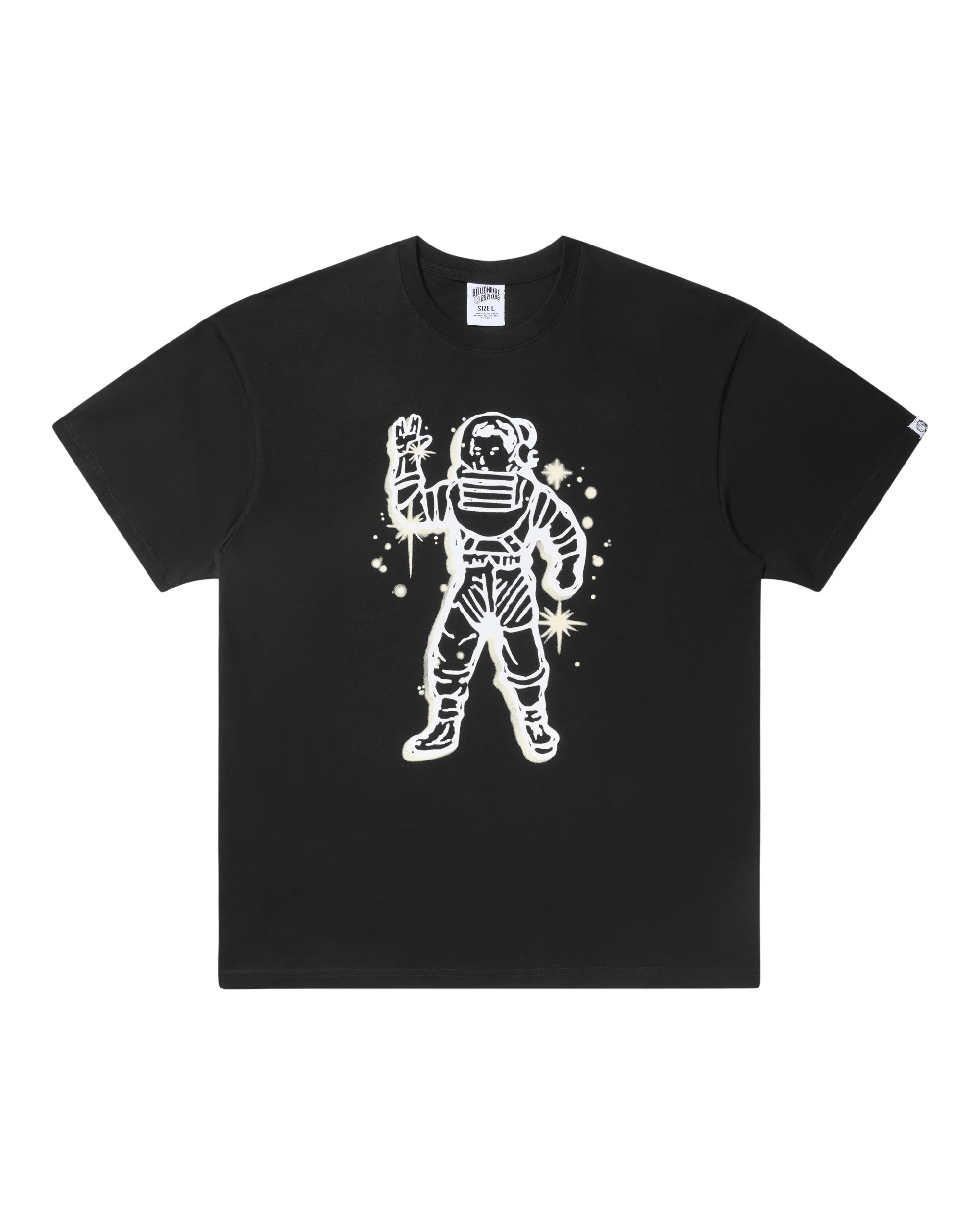 The Astro Tee displays the Standing Astronaut design on the front and an airbrushed Script logo graphic on the back. - Black - Screen-printed graphic on the front and back - 100% Cotton