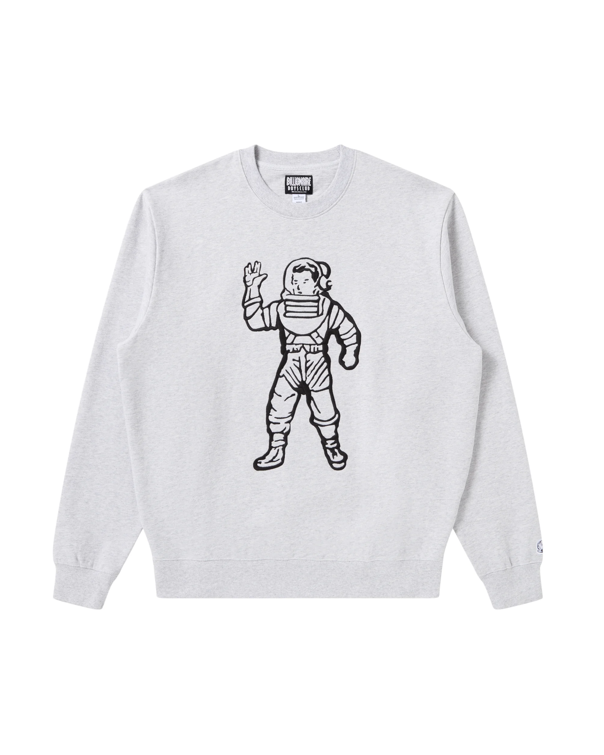 Classic pullover crewneck featuring the brand’s iconic standing astronaut logo printed at the chest and a smaller astronaut detail at the back neck. - Heather Grey - Screen-printed Astronaut logo at front - Screen-printed mini Astronaut logo at back neck - Ribbed collar, cuffs, and hem - Long sleeves - 100% Cotton
