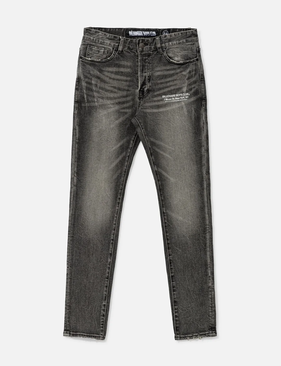 - Billionaire Boys Club - BB Trek Jeans (Slim Fit) - Slim fit - Distressed details - Button fly - Logo text printed on front - 5-pocket - Logo graphic embroidery on back pockets - Color: Black - Material: 100% Cotton - See more Jeans and Clothing - Model wears size 32 - Model measures: Height 186cm, Chest 34”/86cm, Waist 28”/71cm, Hip 36”/91cm - Vendor Code: 851-2102
