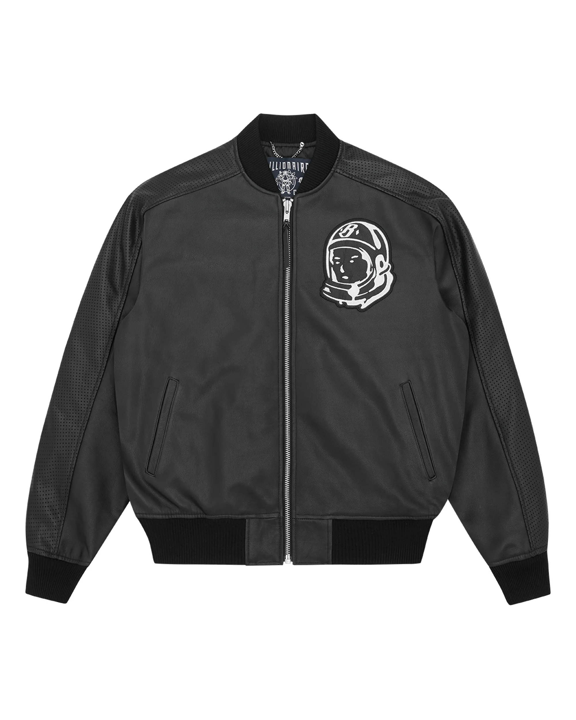 Crafted with 100% cow leather, it features an embroidered Astro helmet at front and the Billionaire Boys Club logo at the back. - Black - Regular Fit - Quilted lining - Elasticated waistband and cuffs - Embroidered Astro helmet patch at front - Embroidered Billionaire Boys Club logo at the back - Two front pockets - Shell: 100% Cow Leather; Lining & Filling: 100% Polyester