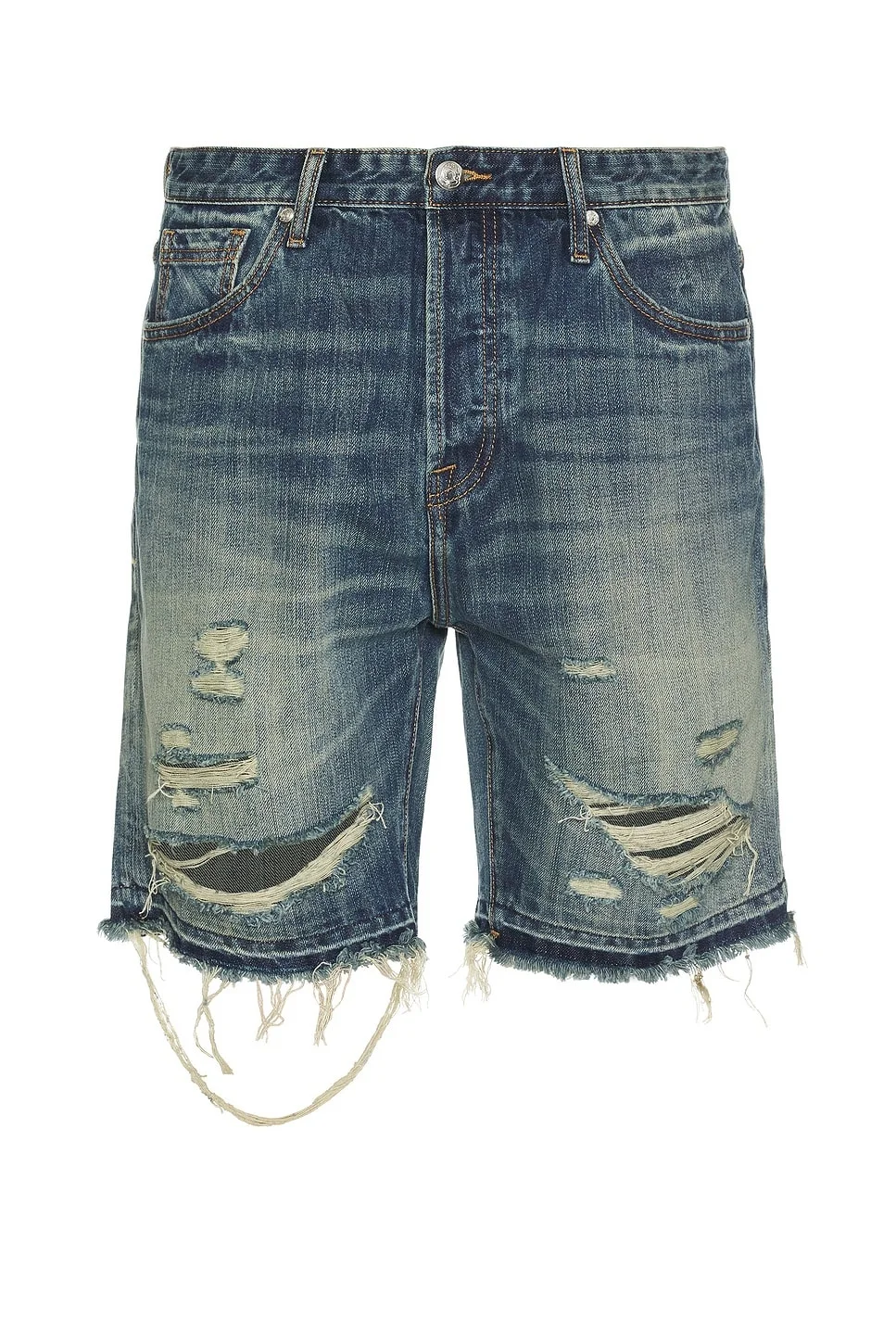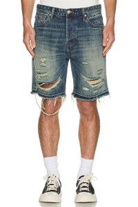 - 70% cotton 30% polyester - Machine wash - Button fly closure.5-pocket styling - Midweight distressed denim with intentional fading - Shorts measure approx 19" in length - Revolve Style No. BBCX-MF20 - Manufacturer Style No. 851-3100