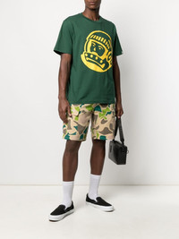 camouflage-print cargo shorts beige cotton embroidered logo to the side camouflage print mid-rise belt loops front button fastening two side cargo pockets two rear flap pockets knee-length Imported Composition Cotton 100% SIZE & FIT Model measurements Height 6 ft 1 in(1.86 m) Bust/Chest 36.61 in(93 cm) Hips 36.61 in(93 cm) Waist 29.92 in(76 cm) FittingInformation This piece fits true to size. We recommend you get your regular size Designed for a slim fit at the waist and loose over the leg Made with a mid-weight non-stretch fabric Washing instructions Machine Wash