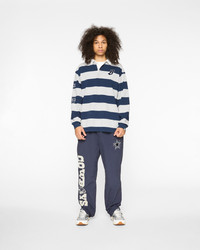 The Dallas Cowboys LS Rugby features a Chenille "B" patch on the front, the Championship years on the sleeve, and the Cowboys x Billionaire Boys Club graphic on the back. - Navy/Grey - Chenille "B" Patch - Championship years on the sleeve - Graphic on the back - 100% Cotton