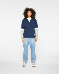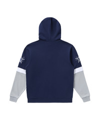 The Dallas Cowboys Zip Hoodie features a zip front and embroidery of the Cowboys logo on the front left chest and the Star logo on both sleeves. - Navy/grey - Embroidery detailing throughout - 100% Cotton