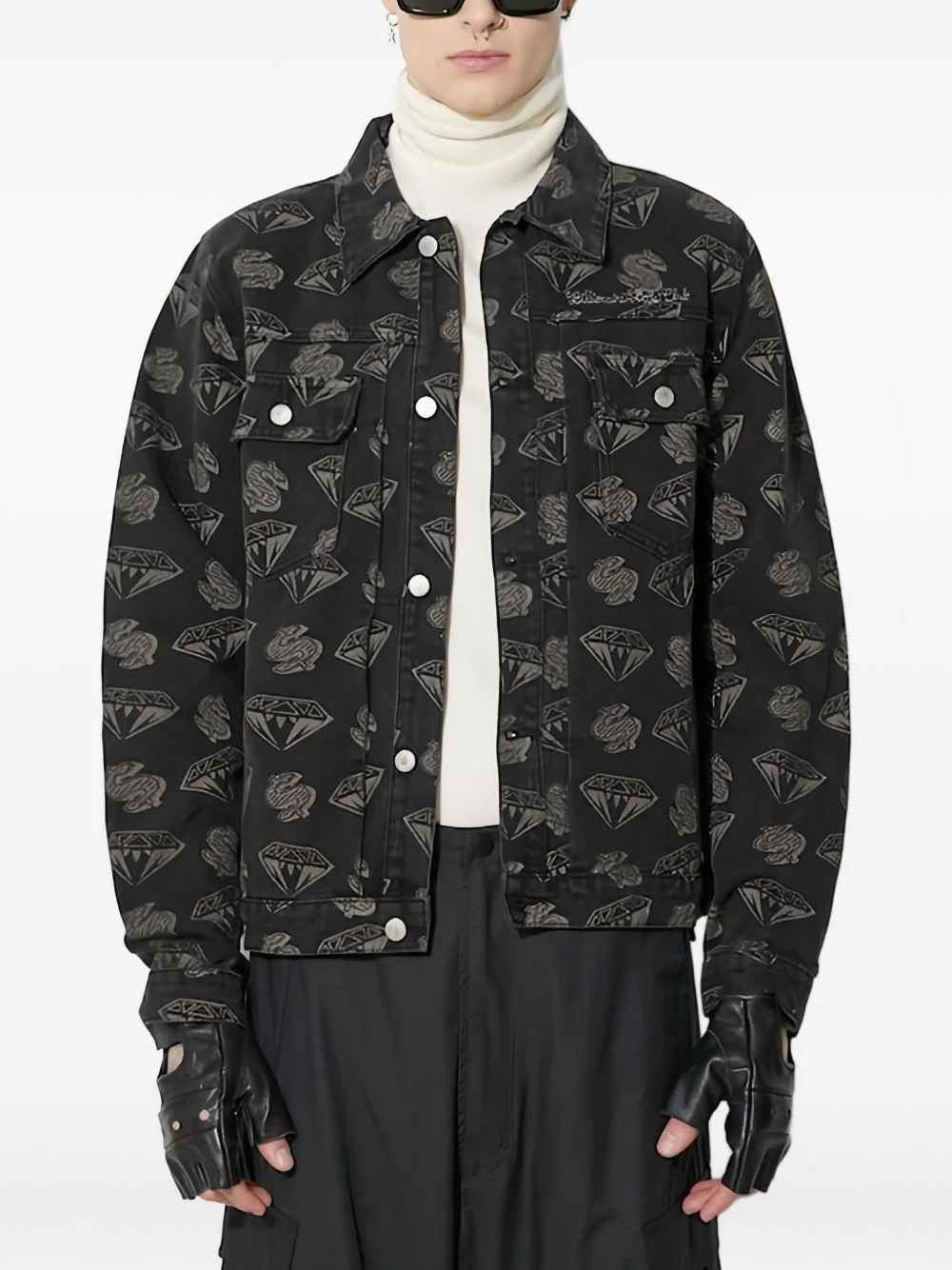 Diamonds & Dollars-pattern jacket Highlights - Black - Diamond print - Dollar print - Button fastening - Chest pockets - Logo patch Made in United States Composition Cotton 100%