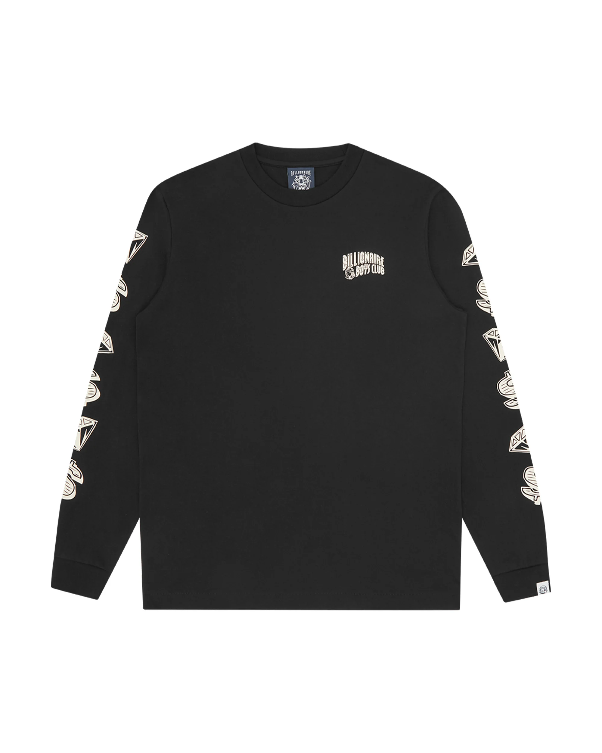 This Diamonds & Dollars L/S T-shirt is made with 100% cotton; it is detailed with the Billionaire Boys Club Arch logo on the chest and completed with Diamonds & Dollars artwork on both the sleeves. - Black - Long sleeves - Vintage ink screen printed Diamonds & Dollars graphic on both sleeves - Vintage ink screen printed Billionaire Boys Club Arch logo at chest - Vintage ink screen printed standing astronaut on the back neck - 100% Cotton