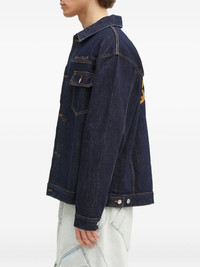 embroidered denim jacket Highlights - Indigo blue - Embroidered lettering - Button closure - Chest pockets - Back embroidery - Classic collar Imported Composition Cotton 100%