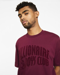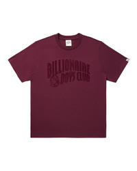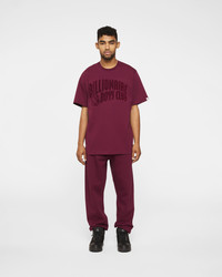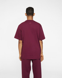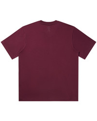 The Flocked Logo Tee features the Curve Logo with a flocked material on the front and a printed Standing Astronaut on the back. - Burgundy - Curve logo with flocked material on the front - Standing Astronaut print on the back - 100% Cotton