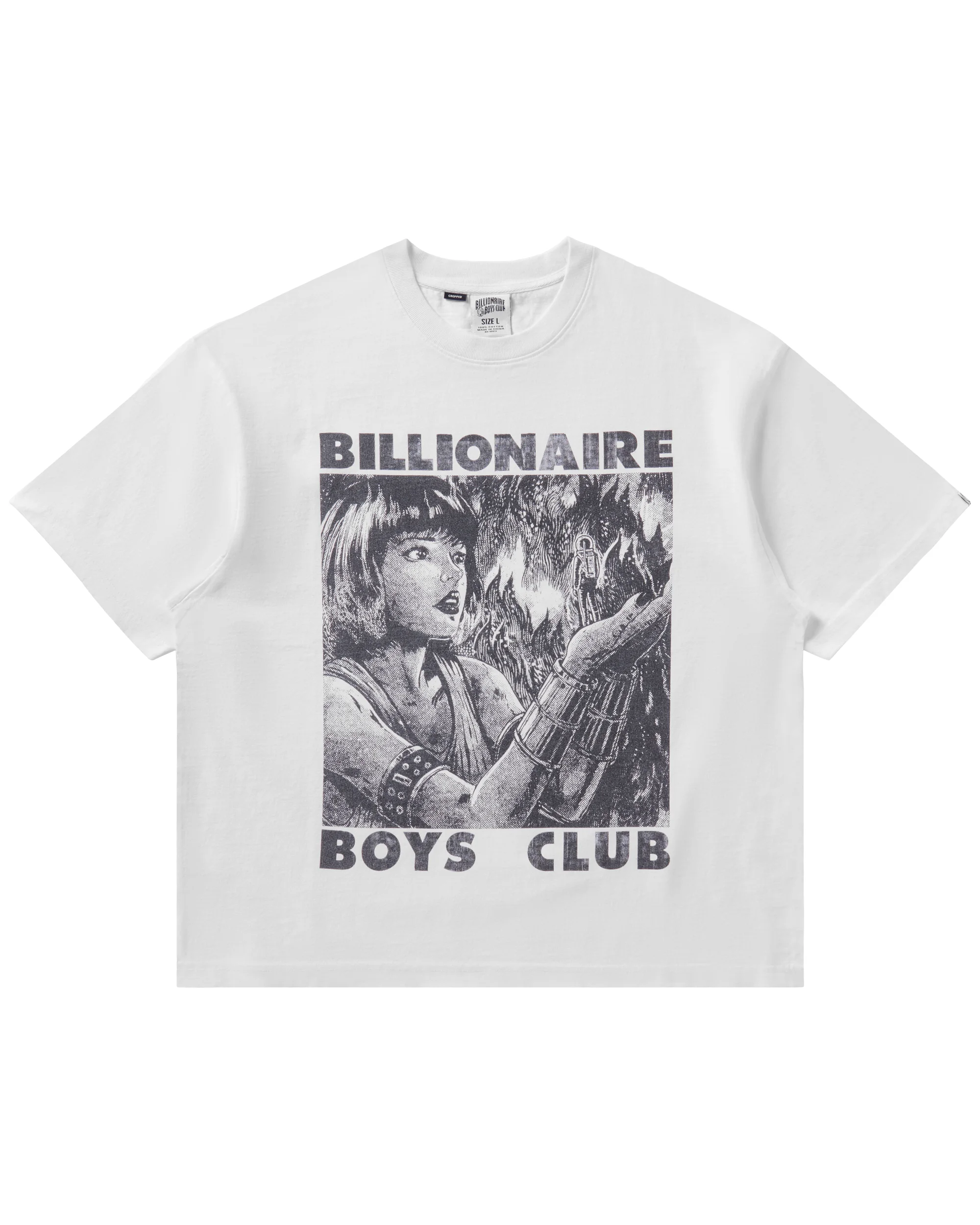 The Giant Tee features a black-and-white comic-style artwork, highlighted by a powerful heroine surrounded by dramatic flame detailing and the Billionaire Boys Club text on the front, and the Standing Astronaut logo on the back. - White - Cropped fit - Screen-printed graphics on the front and back - 100% Cotton