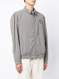 logo-print zip-up shirt jacket light grey logo print to the rear logo patch to the front classic collar front zip fastening long sleeves Made in United Kingdom Composition Polyester 100% SIZE & FIT Model measurements Height 6 ft 2 in(1.87 m) Bust/Chest 34.25 in(87 cm) Hips 36.22 in(92 cm) Waist 29.52 in(75 cm)