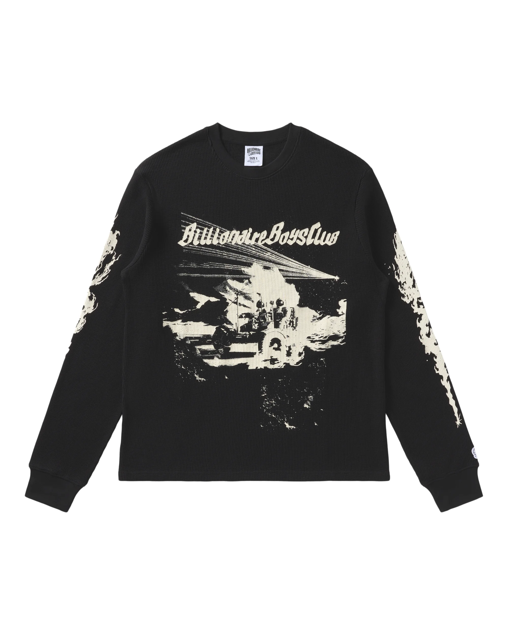 The I Need Space LS Knit features a vintage astronaut-inspired graphic and the Billionaire Boys Club logo on the front, while the back showcases the standout “I NEED SPACE” artwork, along with Screen-printed sleeve details. - Black - Screen-printed graphics - 100% Cotton