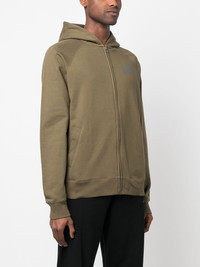 logo-print zip-up hoodie olive green cotton logo print at the chest logo patch at the sleeve front zip fastening long raglan sleeves two side welt pockets straight hem classic hood Imported Composition Cotton 100% SIZE & FIT Model measurements Height 6 ft 2 in(1.88 m) Bust/Chest 36.61 in(93 cm) Hips 35.82 in(91 cm) Waist 27.95 in(71 cm) FittingInformation This piece fits true to size. We recommend you get your regular size Cut for a relaxed fit Made with a mid-weight fabric Washing instructions Machine Wash
