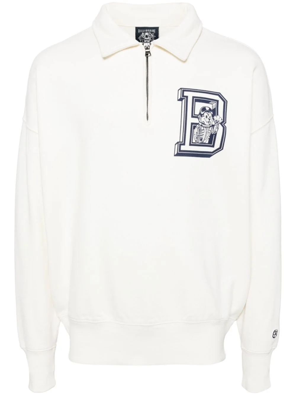 logo-printed sweatshirt Highlights - White/navy - Cotton - Jersey texture - Short front zip fastening - Classic collar - Logo print to the front - Slogan print to the rear - Long sleeves - Ribbed cuffs and hem - Straight hem - French terry lining Imported Composition Cotton 100% SIZE & FIT Model measurements Height 6 ft 2 in(1.88 m) Bust/Chest 34.25 in(87 cm) Hips 34.64 in(88 cm) Waist 26.77 in(68 cm) FittingInformation Designed to be unstructured, offering a loose fit throughout The ribbed hem offers a close, comfortable fit Made from a midweight non-stretch fabric, this piece offers minimal elasticity when worn