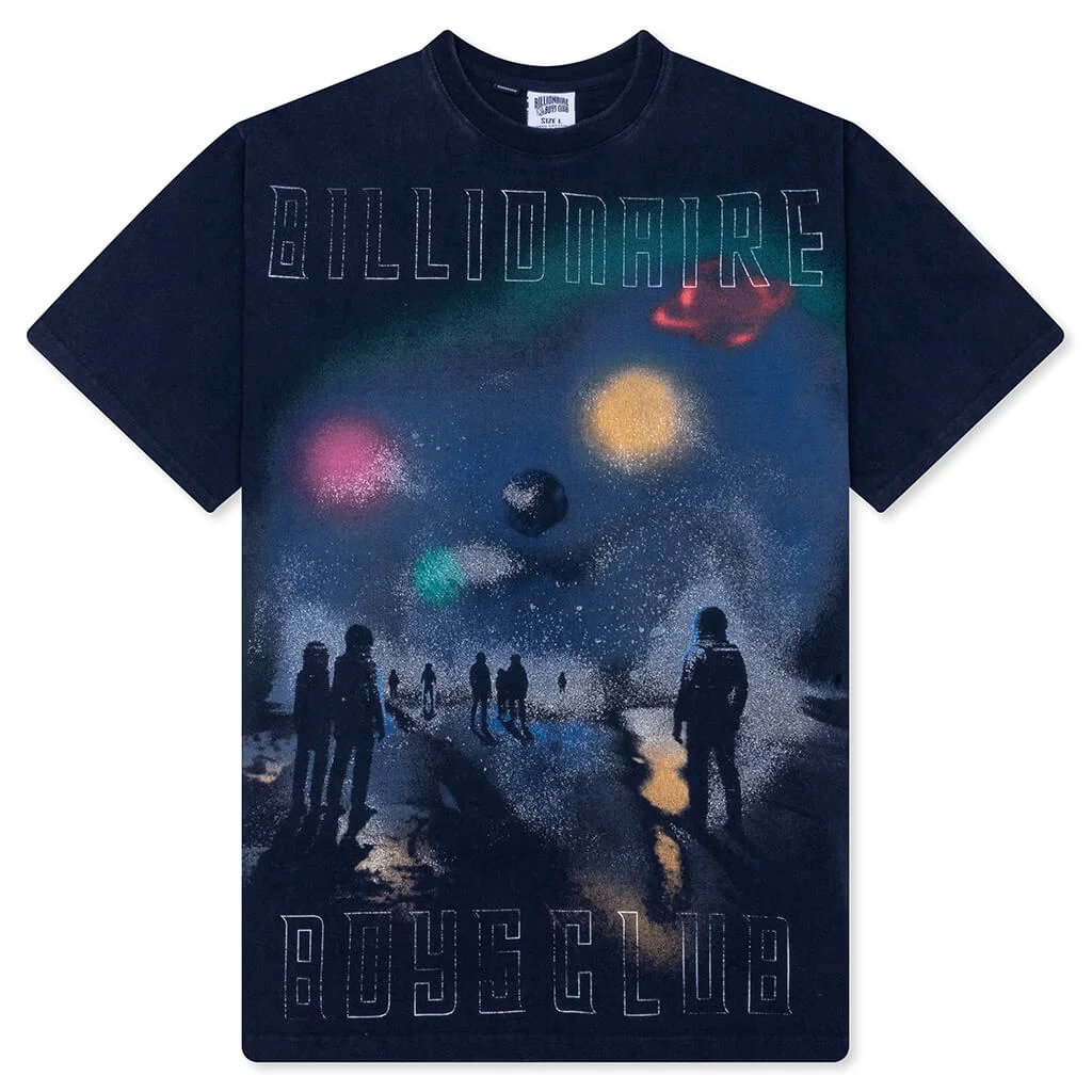 Billionaire Boys Club presents the Mist S/S Tee. Cut from cotton with an oversized fit, this tee features a ribbed crew neckline for everyday comfort. Screen-printed graphics with glitter accents are showcased at the front, while the Standing Astronaut logo sits at the back. A woven brand tab adds the final signature touch. - 100% Cotton - Oversized fit - Crew neckline - Ribbed collar - Screen-printed graphics with glitter accents - Standing Astronaut logo at back - Woven brand tab on left sleeve - Style No: 851-8316-410